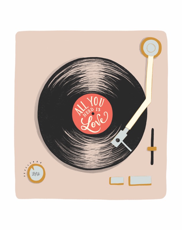 All you need is love Reference 41776 Version 1 Collection(s) Lily & Val Orientation Portrait Keywords: illustration, Music, Player, record, retro, Song, Text, vintage, Vinyl