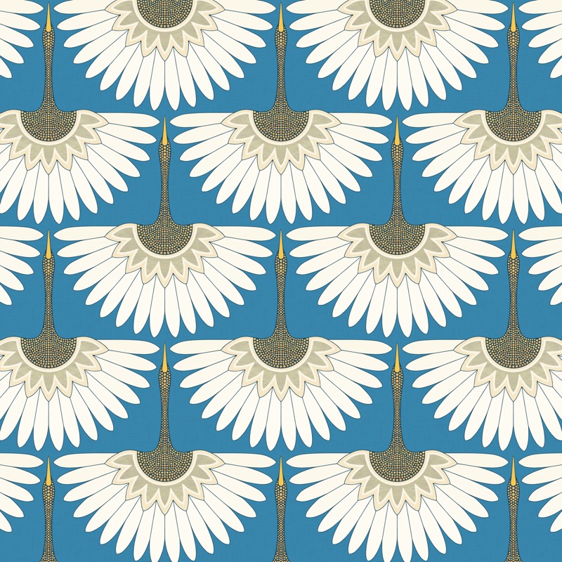 Keywords: Art Deco, bird, Blue, cranes, illustration, Pattern, sharon turner