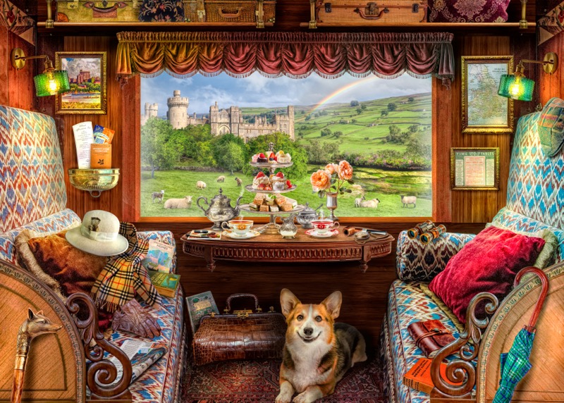 Keywords: afternoon tea, books, castle, corgi, countryside, england, first class, high tea, journey, luxury, private, rail, sheep, train, travel