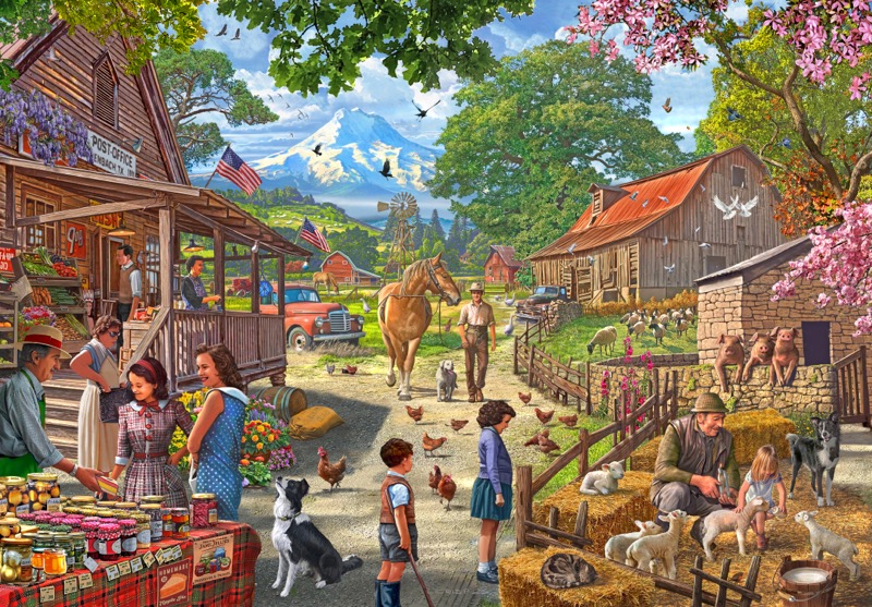 Keywords: barn, Birds, boys, Chickens, children, dogs, farm buildings, Farmer, Flowers, geese, general store, Girls, horse, jam stall, Lambs, Mountain, old trucks, pig sty, Pigs, sheep, shopkeepers, shoppers, straw bales, trees, vegetables
