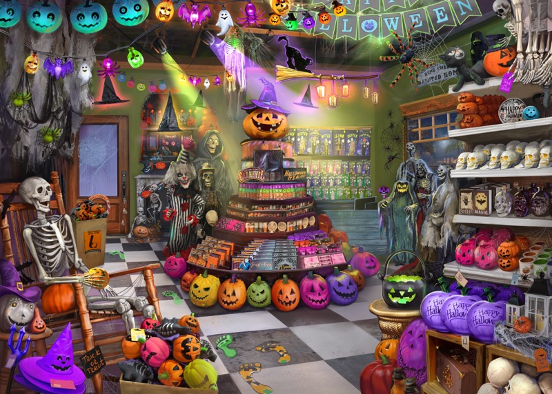 The Boo-tique Interior Reference 43332 Version 1 Collection(s) Halloween Orientation Landscape Keywords: Boutique, clown, Halloween, Interior, items, Pumpkins, scary, Shelf, shelves, Shop, Skeleton, spooky, store